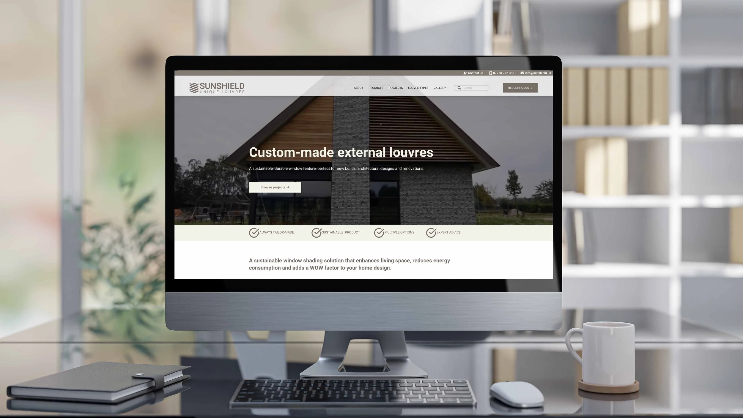 The project was to build a new UK website for Sunshield Louvres. The website focusses on the individual key benefits of why external louvres are a great shading option for homes. The site needed to be prominent with striking imagery throughout, along with promoting the product’s variety of features and benefits. The website features a full product gallery, projects and case studies, detailed product pages with architectural drawings and downloads as well as a simple to use quote enquiry page.